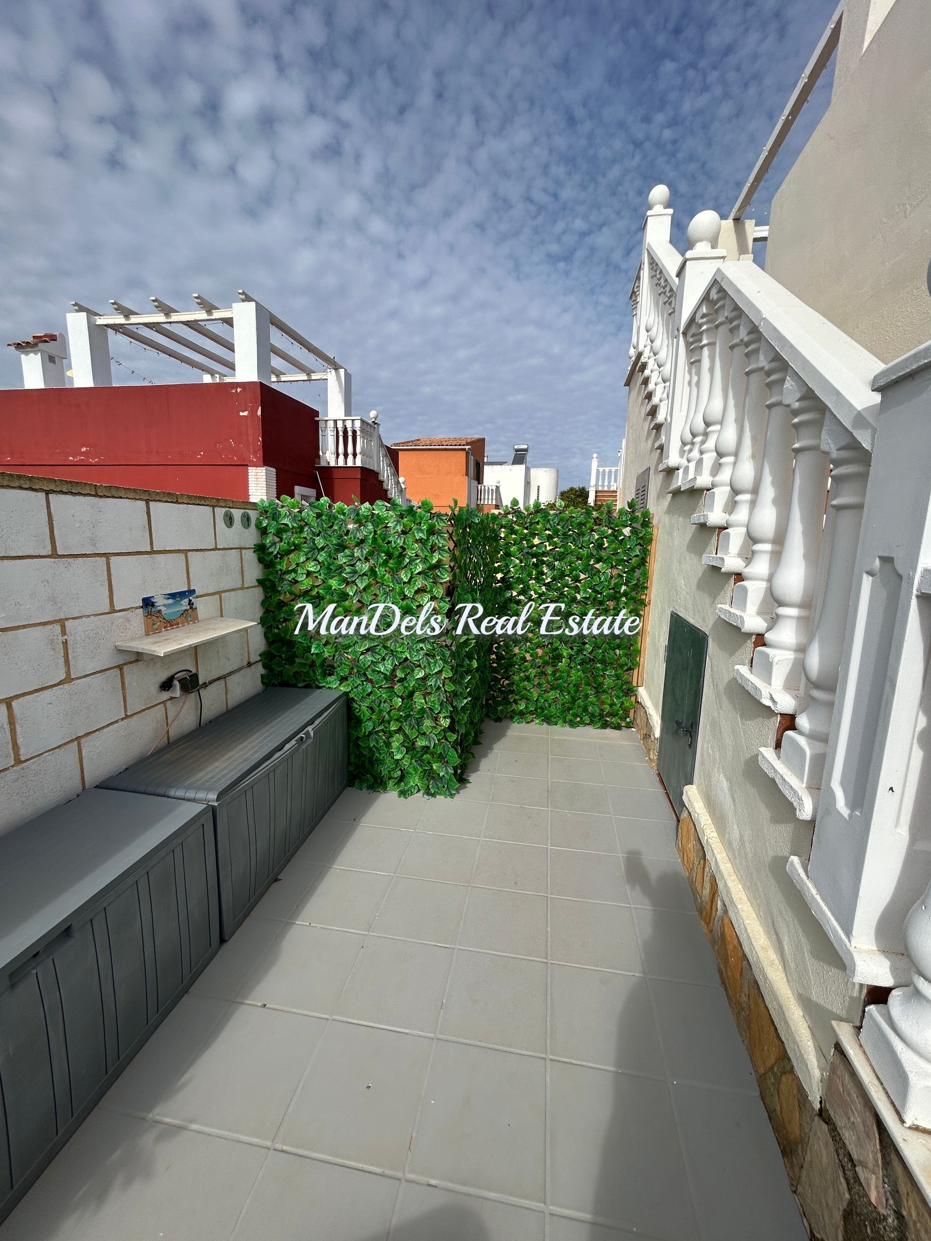 There is a fenced off area and 2 storage cupboards at the rear of the property.