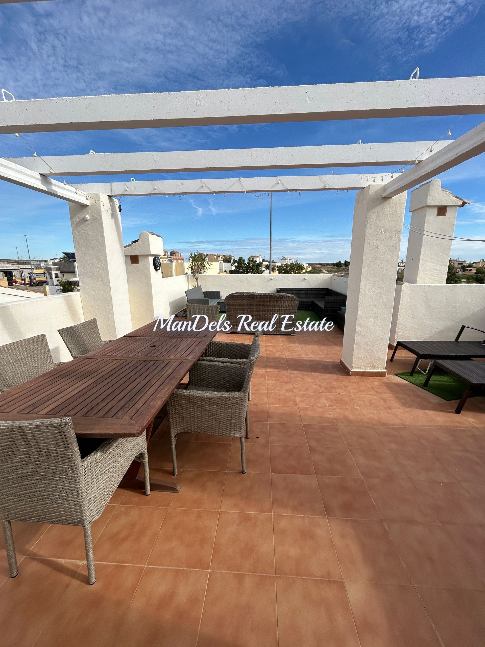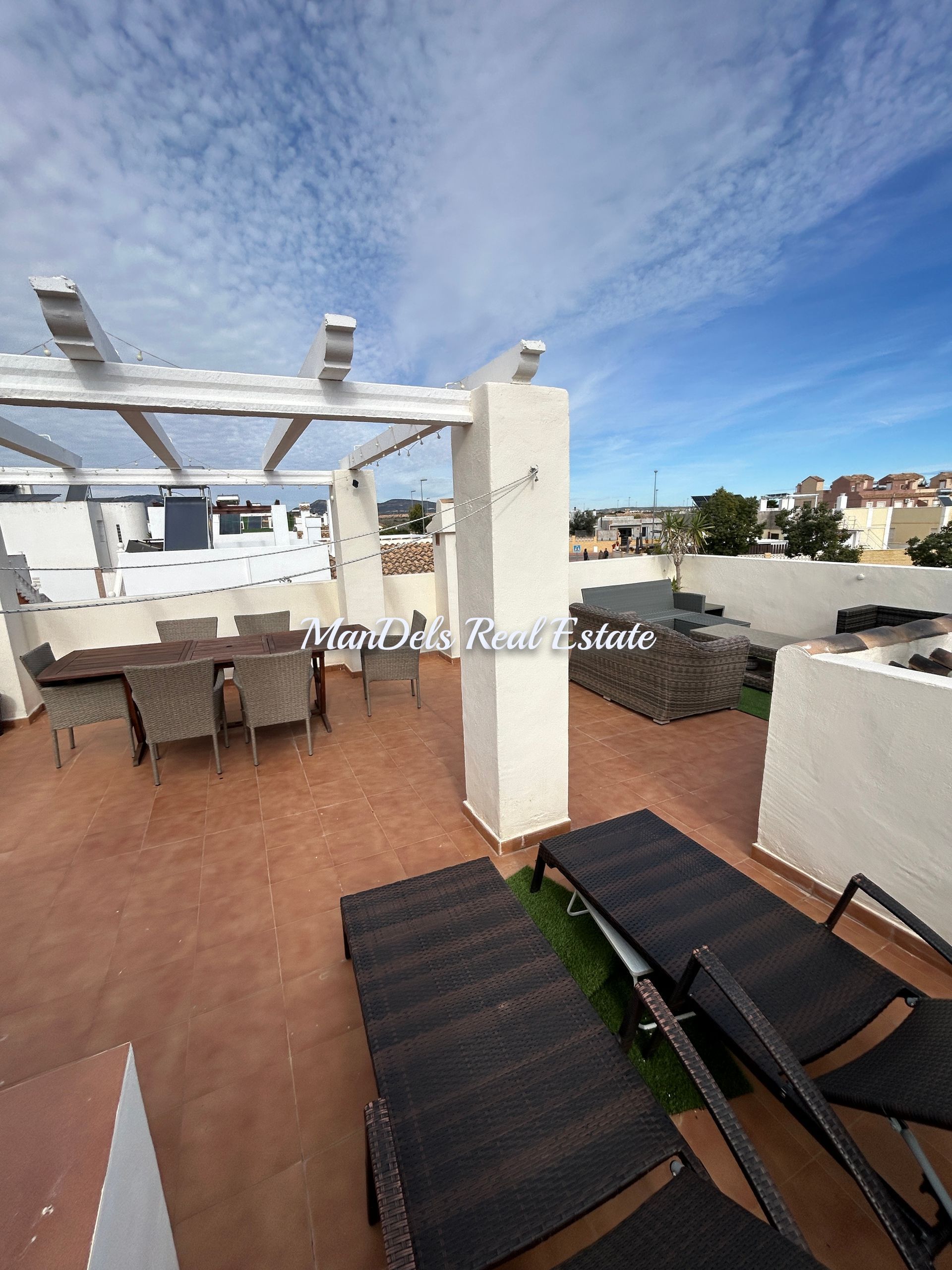 The very large solarium is in great condition and provides plenty of space for seating to enjoy the stunning views of the mountains and the Mar Menor.