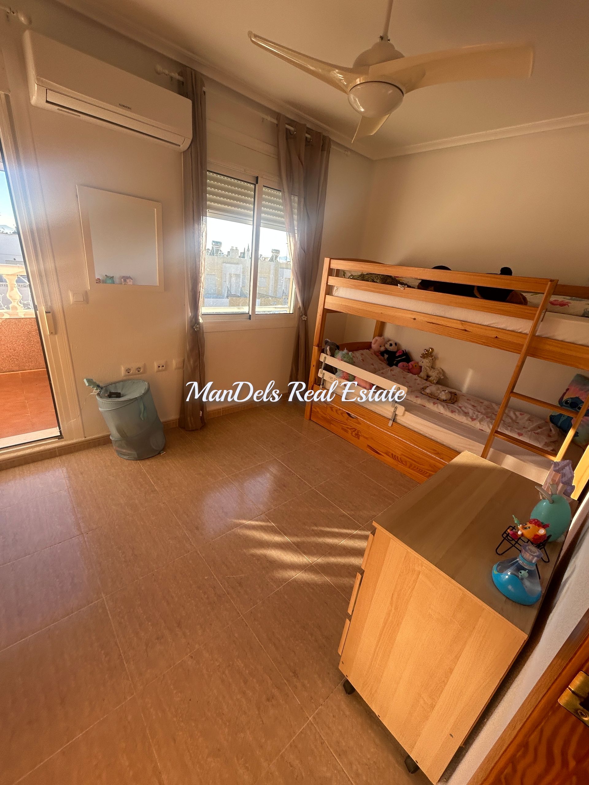 Both upstairs bedrooms are doubles they both have fitted wardrobes and air-conditioning the front one has a small balcony overlooking the garden area.